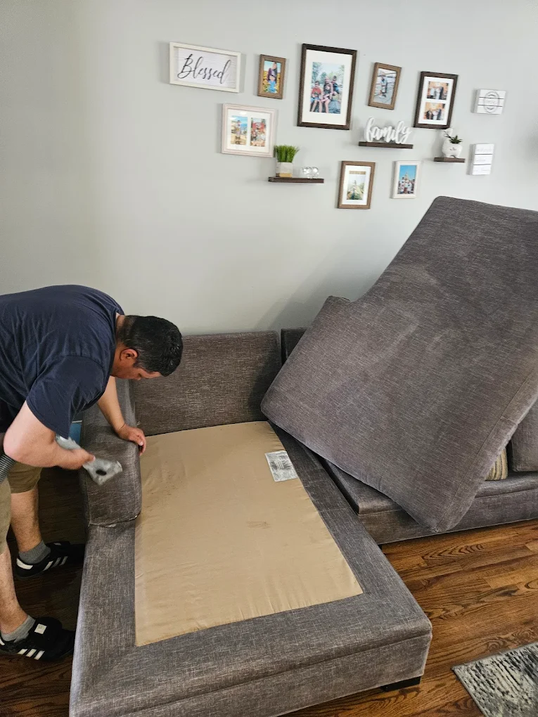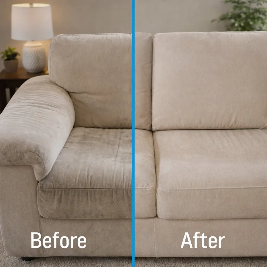 Revive your sofa's color and texture with our couch cleaning and fabric upholstery cleaning gentle on material, tough on buildup.